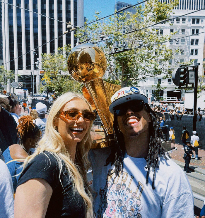 此外,上赛季遭遇ACL目前仍在康复的库里教妹布林克,也主动上前与杜兰特打招呼。期间KD多次低头看向布林克的腿部,应该也是在关心后者的伤情。