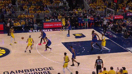 G4尼克斯看起来最有希望赢球的时段,应该是第二节布朗森场下歇的那半节。锡伯杜一反常态,放弃了奴隶主用人方案,尼克斯反而打得不错。这跟G2G3布朗森受困于犯规去休息,尼克斯反而能咬住或者追上比分相呼应,也证明了之前的观点——如果你有面对步行者得分的办法,你最好少一个防守弱点。而唐斯状态还行的时候,即使没有布朗森,尼克斯也确实能得分。