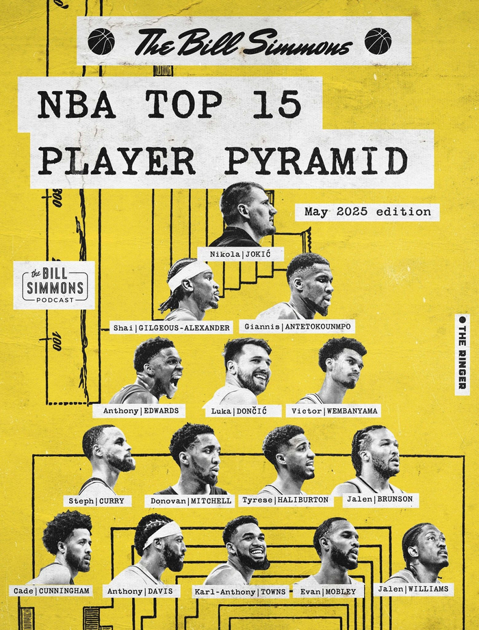 直播吧05月29日讯 名嘴Bill Simmons选出了NBA现役最强15人的金字塔: