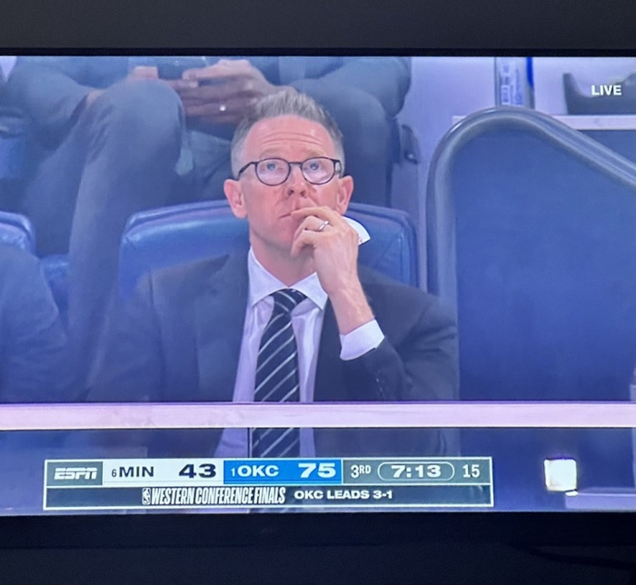 霸业奠基人👨💻雷霆GM普雷斯蒂现场观战 4年重建剑指总冠军