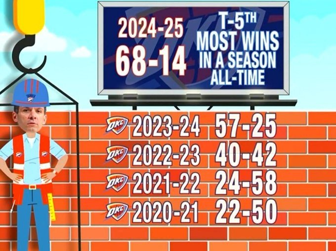 神奇历程🎉雷霆近五年:22胜鱼腩到68胜 一只脚已踏进总决赛