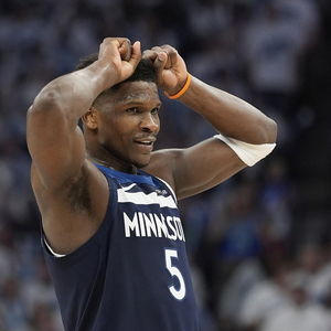 在西决系列赛中,爱德华兹出战5场,场均37.1分钟,得到23分7.4篮板4.6助攻,三项命中率为47.1/28.2/68.8%。