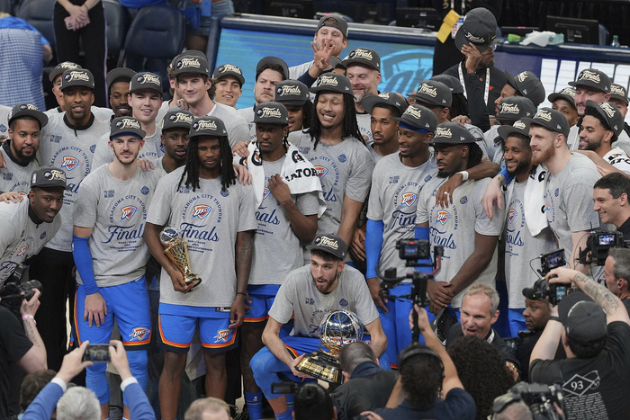 本赛季,雷霆常规赛以68胜14负的战绩位列联盟第一,季后赛首轮4-0横扫灰熊,次轮4-3战胜掘金,西决4-1淘汰森林狼,时隔13年再进总决赛!