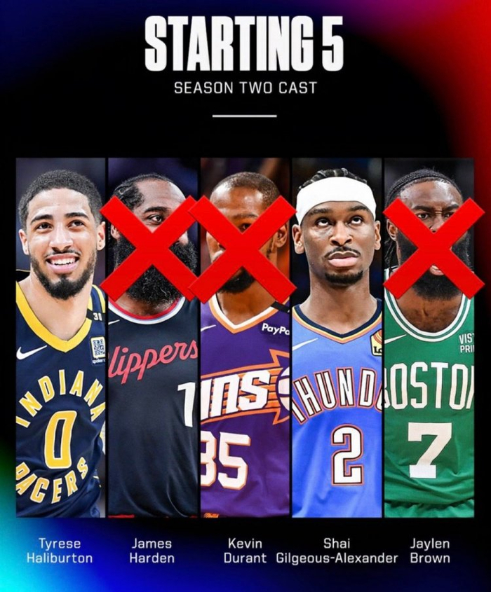 而《Starting 5》第2季阵容在赛季开始前确认为凯文-杜兰特、詹姆斯-哈登、杰伦-布朗、亚历山大和哈利伯顿。