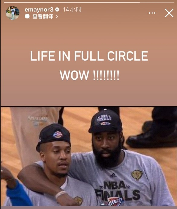 12年曾以球员身份随雷霆进总决 雷霆助教梅诺晒照:生活是个圆圈