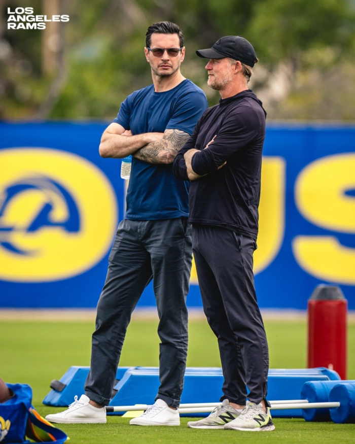 直播吧5月30日讯 昨日,NFL洛杉矶公羊队官推晒出一张包含湖人主教练雷迪克的球队训练照。