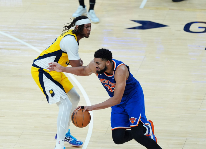 直播吧5月31日讯 在昨天的东部决赛G5,尼克斯主场111-94大胜步行者,总比分追至2-3;唐斯20投10中,砍下24分13篮板3助攻1抢断。