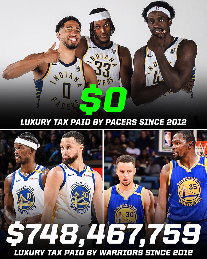 😲0美元VS7.48亿美元!12年以来步行者奢侈税VS勇士奢侈税对比