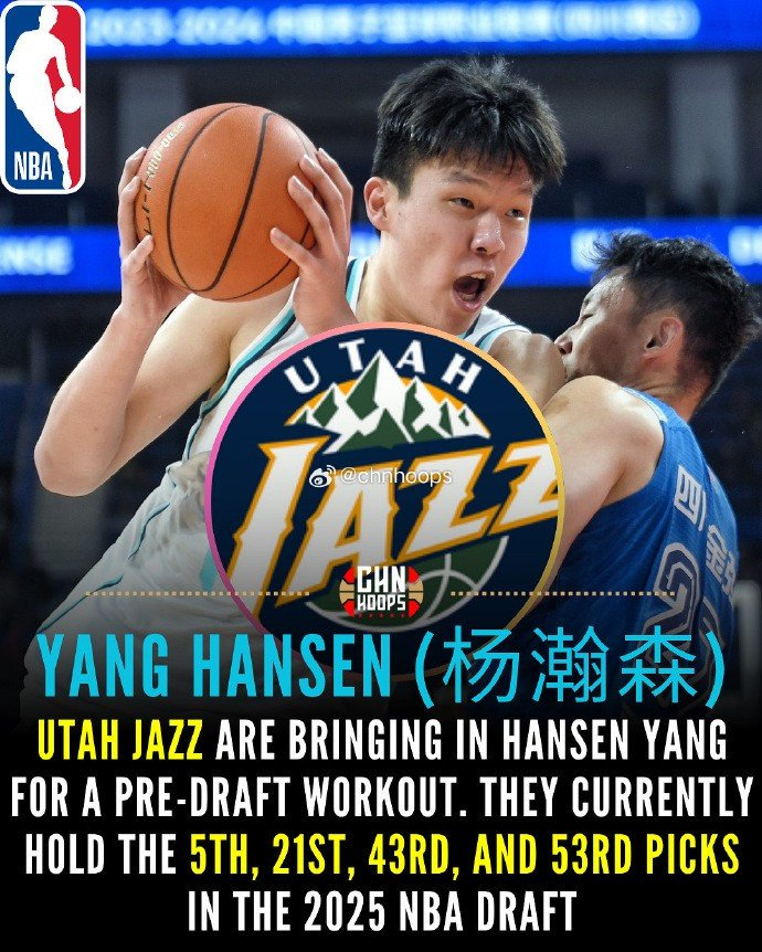 据媒体人chnhoops报道,杨瀚森第二站试训的是爵士队。