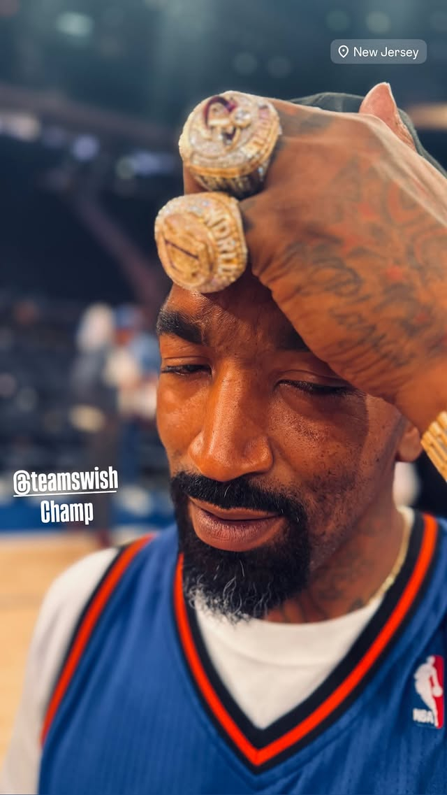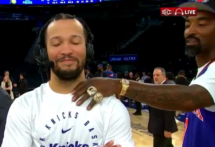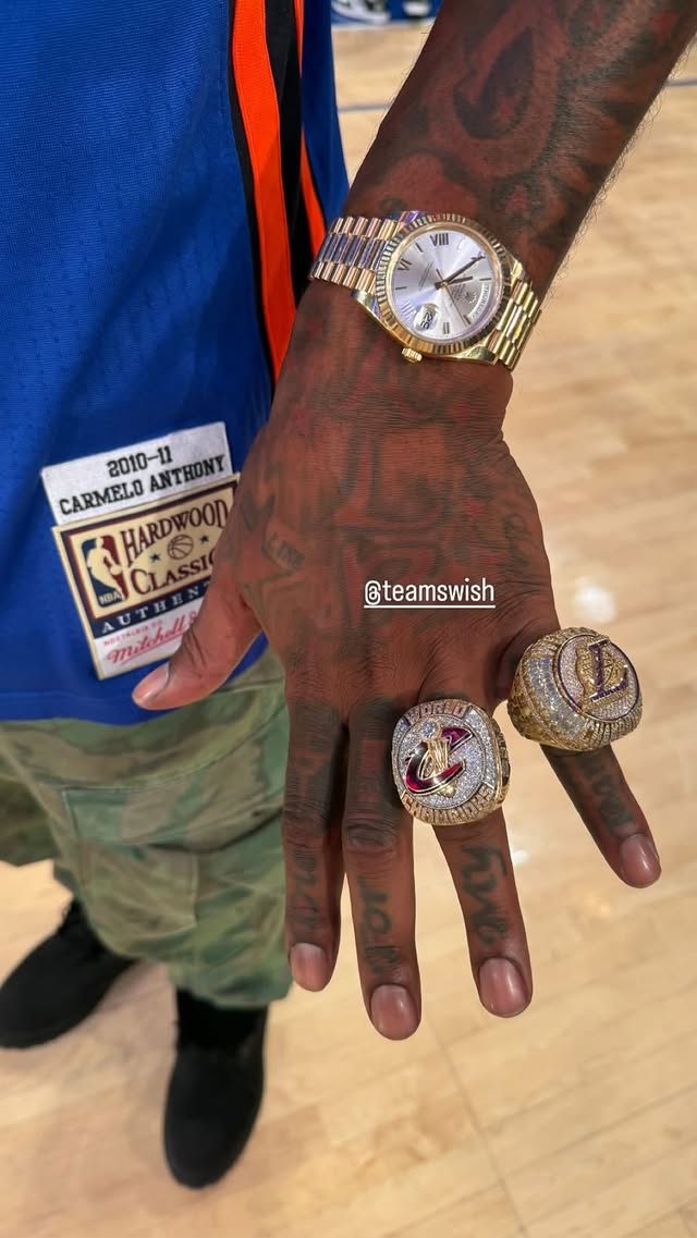 JR观看东决G5 佩戴2016&20两枚总冠军戒指&并用这只手拍了布伦森