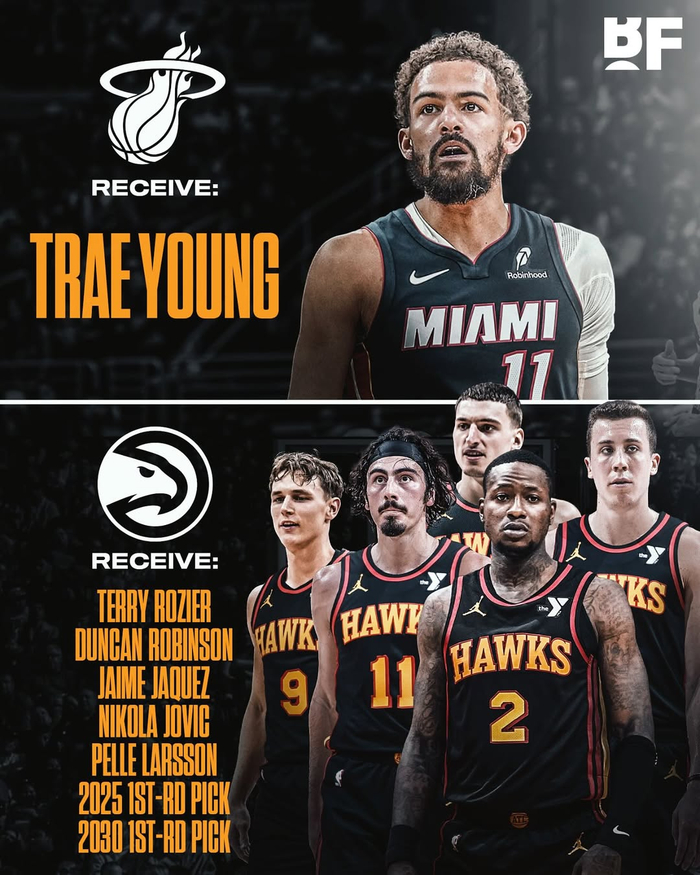 老鹰得到:特里-罗齐尔、邓肯-罗宾逊、小海梅-哈克斯、尼古拉-约维奇、佩勒-拉松、2025年首轮签、2030年首轮签。