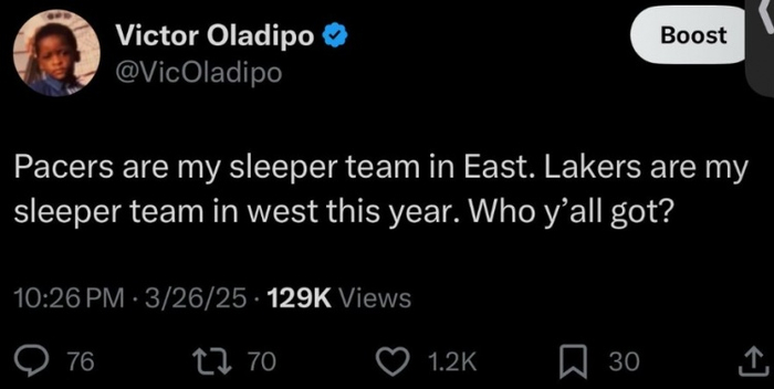 在季后赛开始前,奥拉迪波预测的是湖人和步行者聚首总决赛。