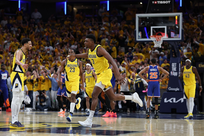 在东部决赛中,步行者面对最强大的对手纽约尼克斯,这是他们在2000年唯一一次进入总决赛时击败的球队。步行者用精英级别进攻在六场比赛中以压倒性优势击败了尼克斯,泰瑞斯-哈利伯顿在这次系列赛中表现出色,场均18.8分5.7篮板9.8助攻,还有几次关键命中;西亚卡姆在系列赛中三次得分30+,被评为东部决赛MVP;主教练卡莱尔,他曾在2011年带领达拉斯独行侠(彼时还叫小牛)夺冠,哈利伯顿称他为“博学的人”。