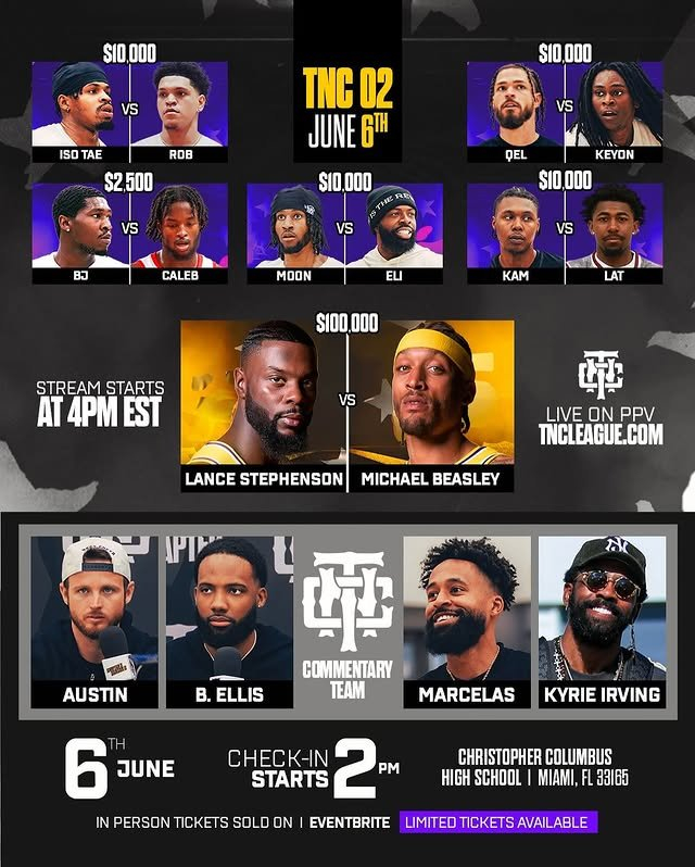 直播吧6月2日讯 前NBA球员、曾征战CBA的迈克尔-比斯利和史蒂芬森将在当地时间6月6日(北京时间6月7日)举行一场单挑赛,获胜者奖金10万美元,今天官方发布了具体的比赛安排。