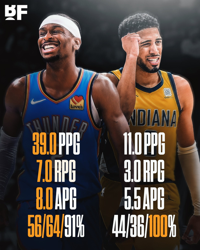 在这两场比赛里,亚历山大场均:39.0分7.0篮板8.0助攻,投篮命中率56%,三分命中率64%,罚球命中率91%;