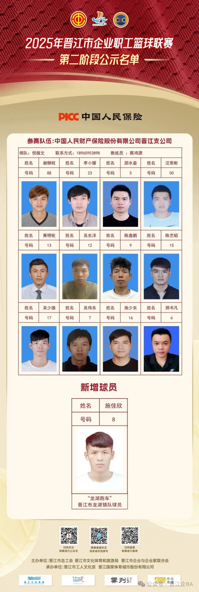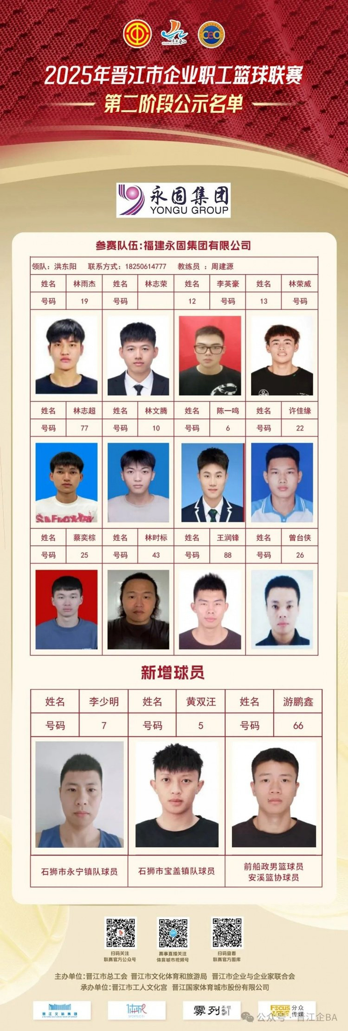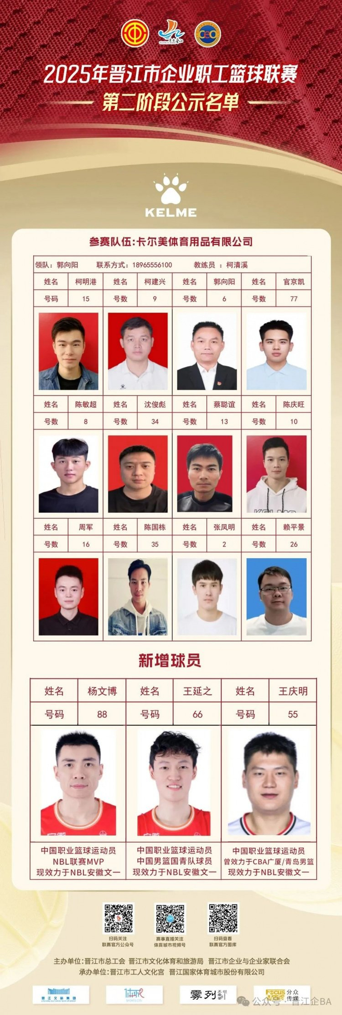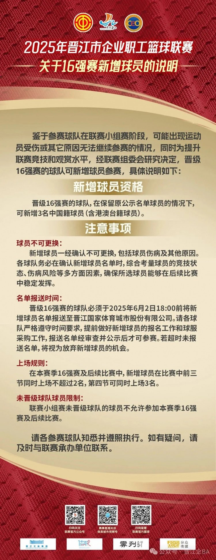 值得一提的是,由于本届比赛周期较长,参赛球队在联赛小组赛阶段,可能出现运动员受伤或其他原因无法参赛的情况,同时为提升联赛竞技与观赏水平,经组委会研究决定,第二阶段球队可新增球员参赛,具体说明如下: