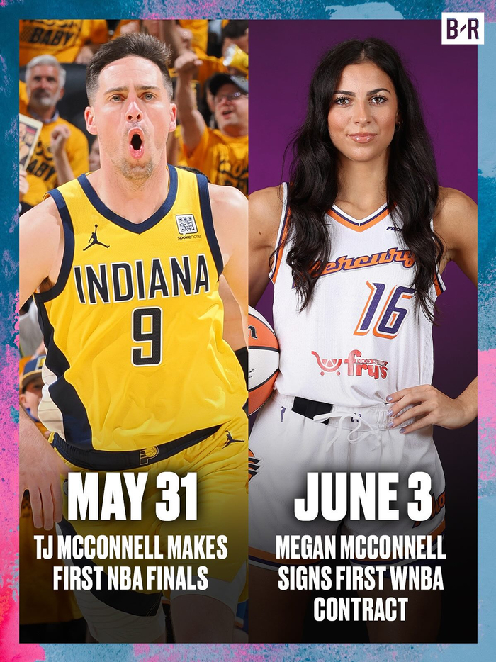 直播吧06月05日讯 步行者TJ-麦康纳生涯首次闯入NBA总决赛,而他的妹妹梅根-麦康纳也签下了自己WNBA生涯的首份合同,目前效力于菲尼克斯水星。