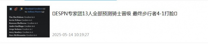 值得一提的是,之前对于步行者的预测ESPN专家团失算了。