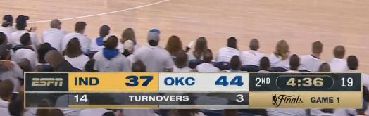 步行者14次失误 雷霆3次