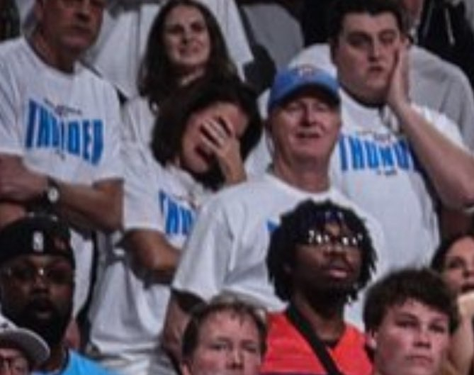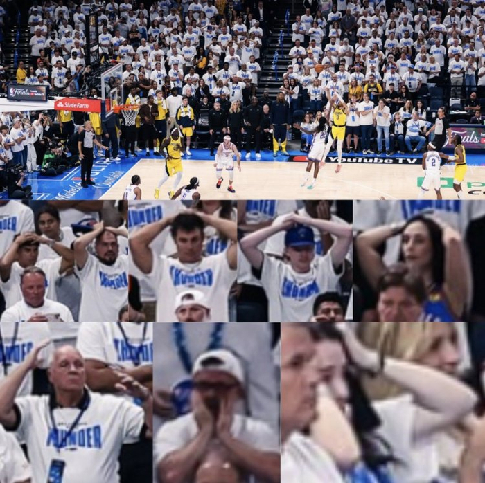 赛后,美媒及一些记者晒出了现场雷霆球迷在亲眼看到主队被绝杀时的表情,抱头捂腮几乎成为标配。