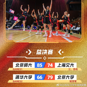 CUBAL综述:北师大女篮战胜上海交大夺季军 北大战胜清华成功卫冕 NBA综合 2025.06.0623:59 关注 每日赛果!恭喜北师大女篮战胜上海交大拿下季军,北京大学战胜清华大学成功卫冕!【来源:直播吧】
