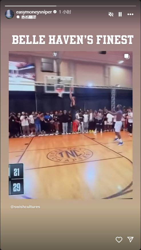 杜兰特转发了二人单挑的集锦并配文写道:“BELLE HAVEN的骄傲”。