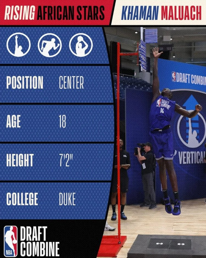有9号签!名记:多队非常重视南苏丹中锋马卢阿奇 猛龙是其中之一