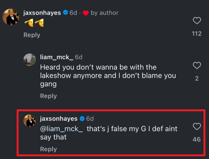 网友:听说你不想待在湖人了?海斯:瞎说!我从来没说过😡