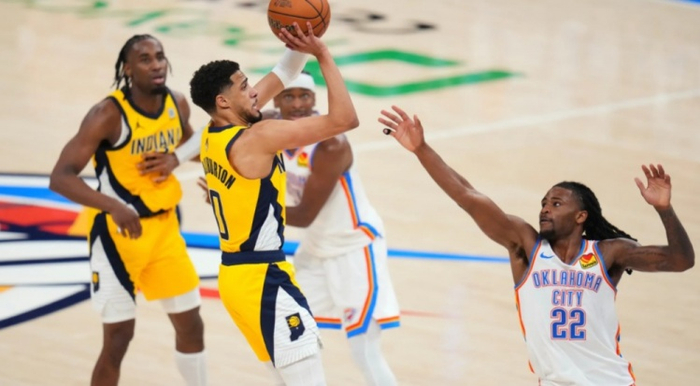 可是,一件事做得太直白,那就不容易得逞了。雷霆敢于摆小、敢于换防当然是有底气的,对掘金的系列赛,他们怎么不让进入罚球线以下区域的约基奇接不到球,咱们也是见识过的。步行者上半场之所以那么多失误,很大一部分就来自太想在篮下拿到大吃小机会。企图都写在了脸上,反而怎么都打不顺。