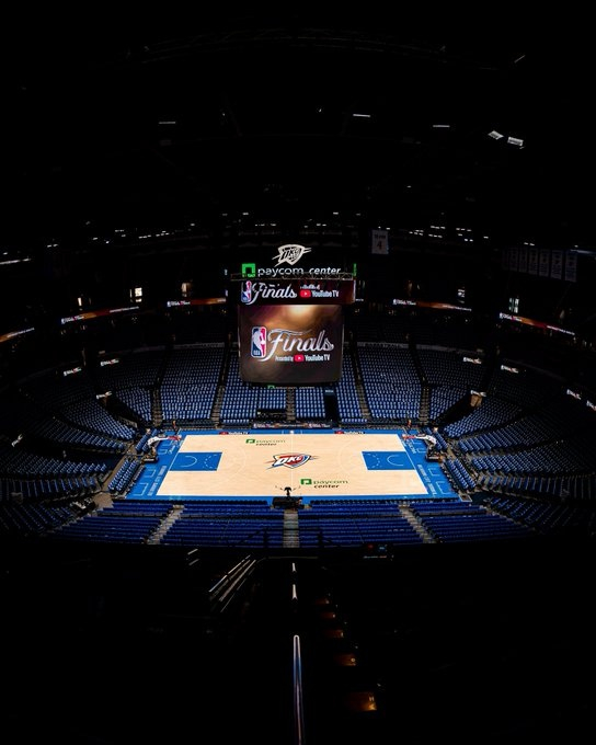 雷霆官方晒出了Paycom中心球馆的漂亮图片并写道:“明天的舞台已准备就绪。”