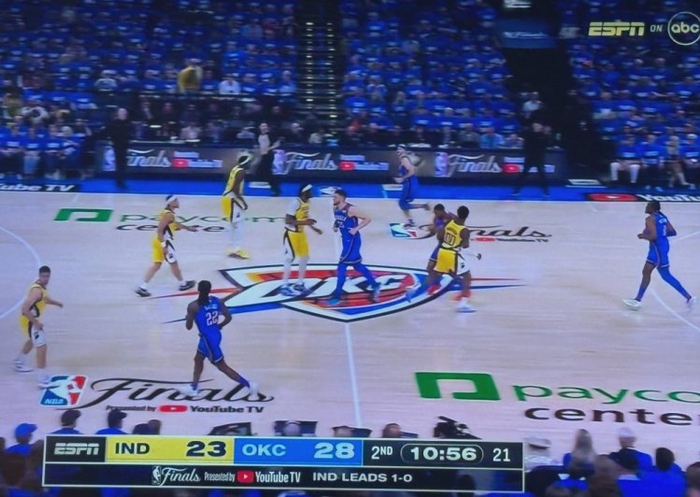 不过联盟第二节便取消了这个投影,改成了“NBA总决赛”的字样。