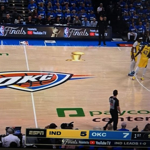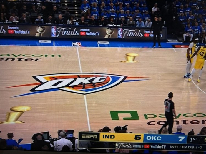 直播吧6月9日讯 今日上午步行者和雷霆总决赛G2正在展开。为了应对G1比赛后大量关于恢复冠军奖杯图案的讨论,联盟决定在G2设置了奥布莱恩杯的投影。