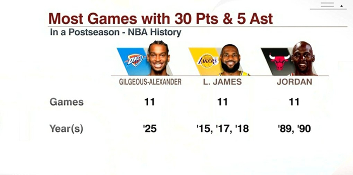 亚历山大单赛季季后赛第11次砍下30分5助 追平乔&詹并列历史第一