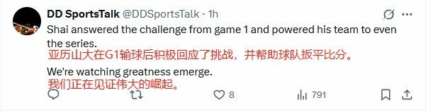 NBA总决赛G2,雷霆在主场以123-107击退步行者。亚历山大个人总决赛前两场合砍72分,超越1991年的乔丹(69分)和2001年的艾弗森(71分),创NBA历史新纪录。