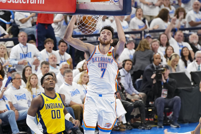 直播吧6月9日讯 雷霆123-107大胜步行者,将大比分扳为1-1。赛后,雷霆球员霍姆格伦接受媒体采访。