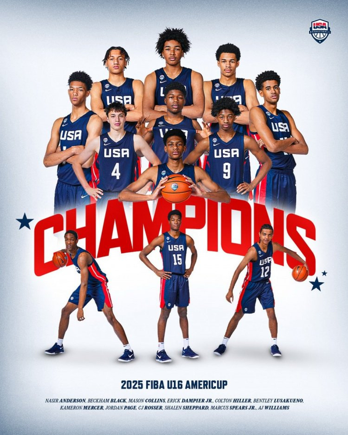 场均净胜58.6分!美国男篮取得U16美洲杯9连冠 赛事49胜0负