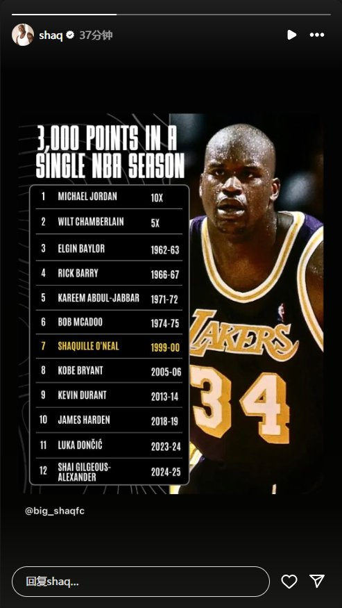 奥尼尔转发单赛季3000分俱乐部:历史共12人 无詹无库 乔丹10次 NBA综合 2025.06.1016:17 关注 NBA历史仅有12位球员在单个赛季(包括常规赛和季后赛)中得分超过3000分【来源:直播吧】