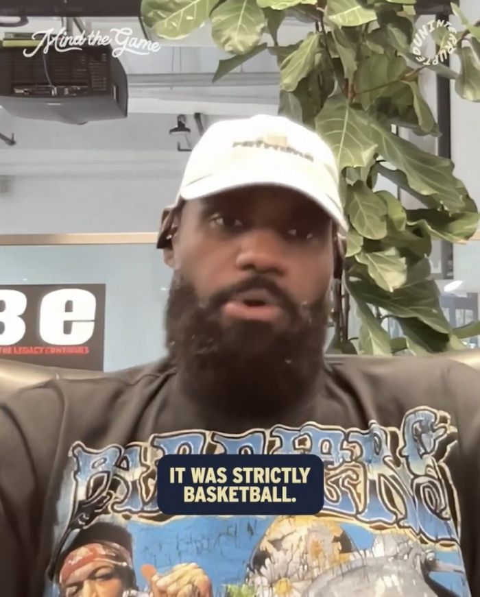 “当然,我们在那里讨论了许多场外发生的事情,社会不公、警察暴力执法之类的,那也是应该的。但当关注点集中于篮球部分时,那就是一切了。在我赢过的所有冠军中,那种级别的专注度,比如,‘你能为了完成任务而维持多久的专注力?’因为如果你想丢掉专注力完全是有理由的,因为你太习惯于某种生活方式了,你就会觉得,‘去他的这些吧,我不想在这打球了。我为什么要在这里?我不想参与这个。这不是我想要的。我无法吃上某一种饭。我没法做这件事。我见不到家人。我无法集中注意力。’你可以轻易地摆脱你为何身陷其中的困惑。”