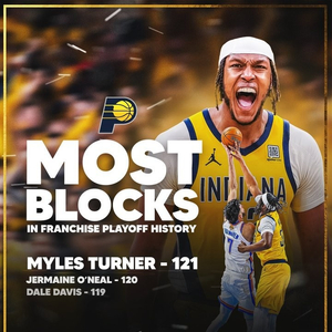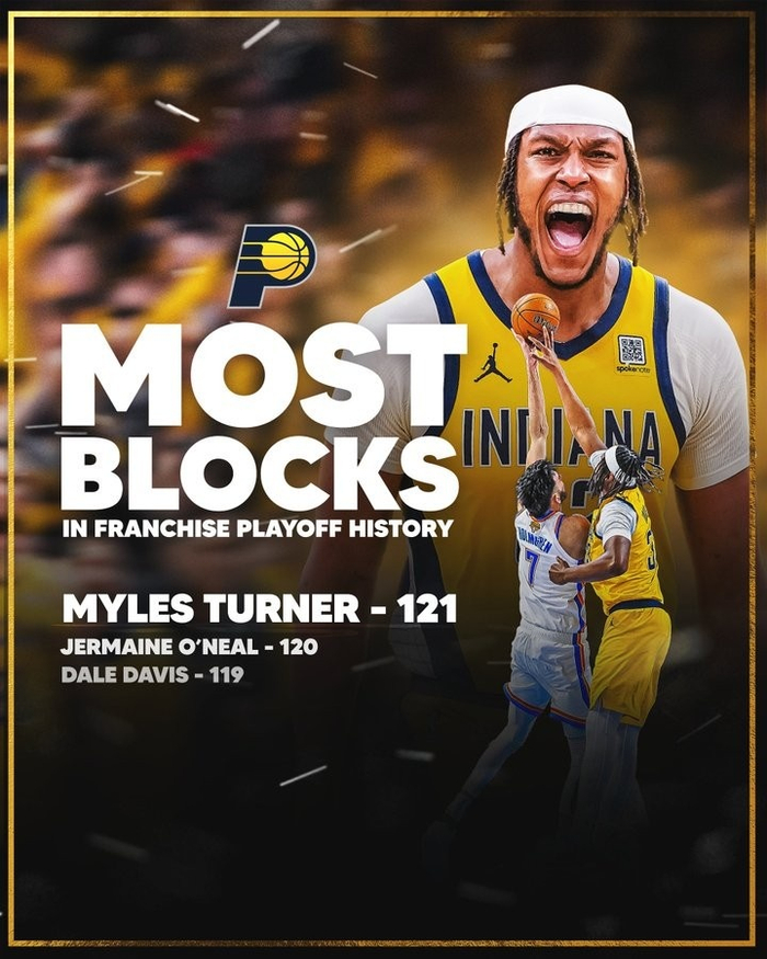 截至发稿,特纳送出2次盖帽,生涯季后赛盖帽数121次,超越杰梅因-奥尼尔,成为步行者队史季后赛盖帽王。