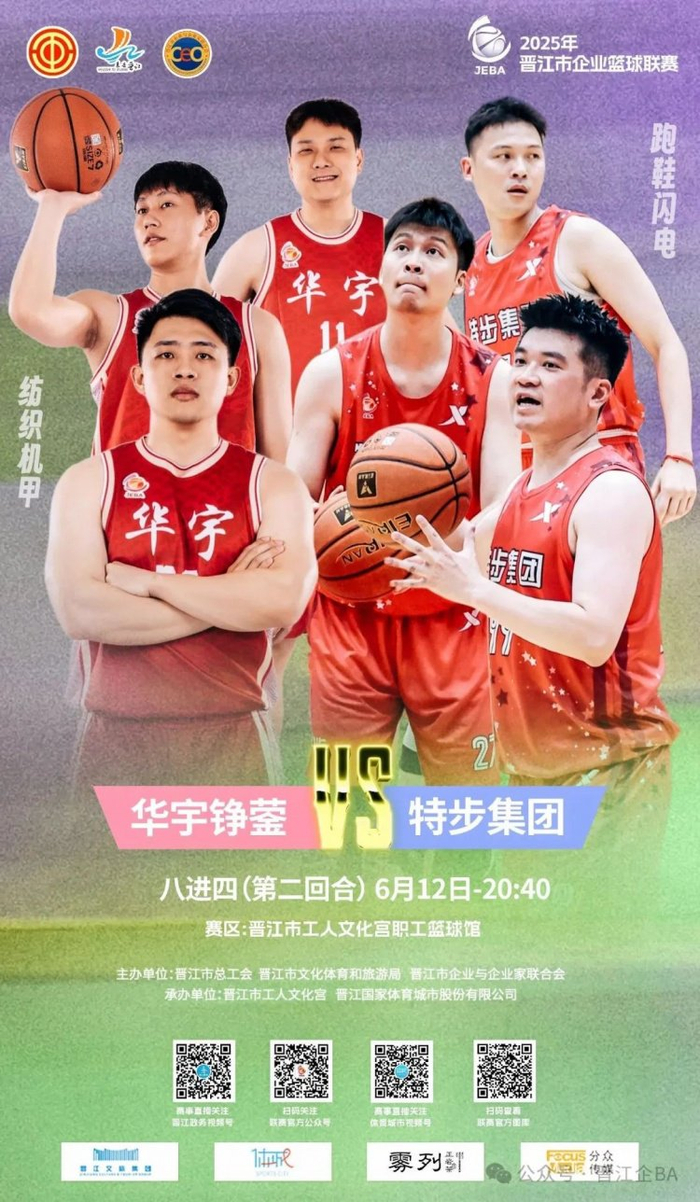 今天(6月12日)晚上,晋江市企业职工篮球联赛(简称“晋江企BA”)将在晋江市工人文化宫职工篮球场进行8进4(第二回合)淘汰赛,首场比赛由永固集团对阵人保财险,第二场比赛由华宇铮蓥对阵特步集团,今天晚上将决出两支率先进入四强的队伍。让我们共同期待今晚各球队的精彩表现,也欢迎广大球迷朋友们到现场或在线上为自己喜欢球队呐喊助威!