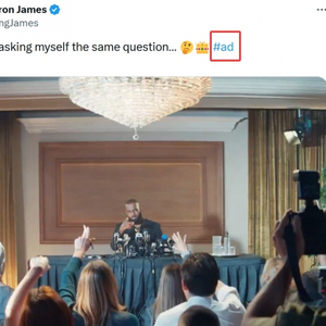 詹姆斯则是在视频上方配文道:“我一直在问自己同样的问题…… 🤔👑”好在最后还有一个#ad标签(advertisement),让人知道这其实是广告的一部分😂。