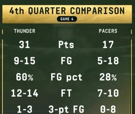 但同样不可忽视的一点是,虽然步行者几乎领先了一整场,可他们在第四节断电,被雷霆队攻防两端完胜,这也是不争的事实。