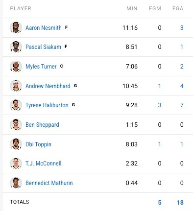 第四节开始的第一攻,哈利伯顿还在场下休息,这时候西亚卡姆显然是阵地战的第一选择。可不知道是卡莱尔示意,还是内姆哈德临时起兴,整整24秒的进攻回合,西亚卡姆基本就是两手空空罚站,看着自家后卫在三分线外一通运球炒菜......