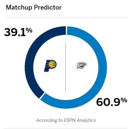ESPN总决赛天王山预测更新:雷霆胜率升至60.9% 步行者39.1%