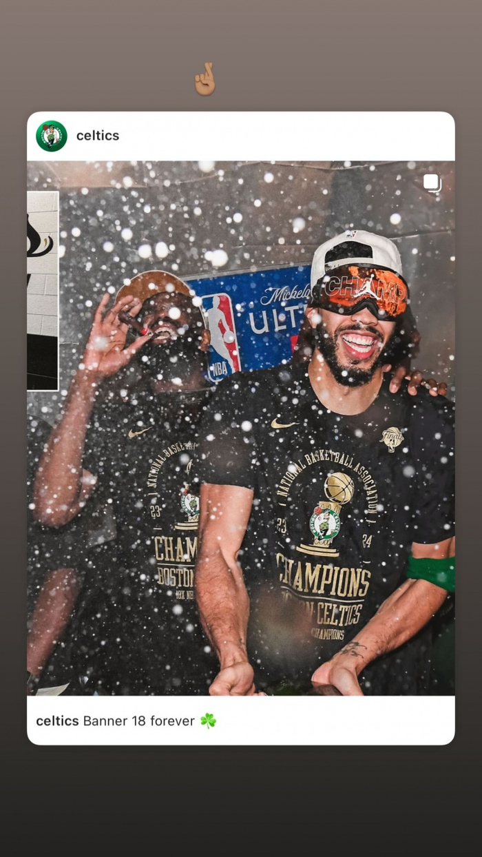 塔图姆今天在社媒上晒出多张图片和视频,纪念这一荣耀时刻。