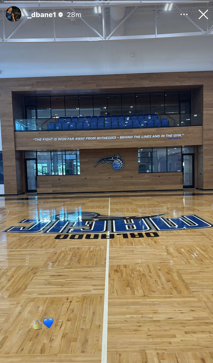 交易至魔术后,他也在社交媒体上快拍中发布了球馆照,配文:“🔒💙”
