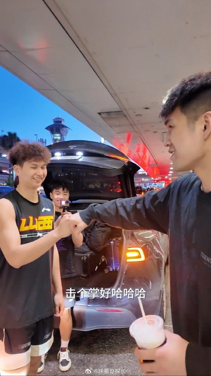 “同一经纪团队的张文杰来接机,穿着山西的训练衫,哈哈😆”