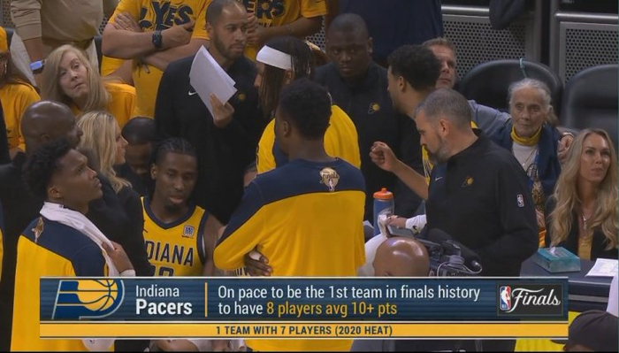 步行者有望成为NBA首个总决赛8人场均得分10+球队 热火2020年7人
