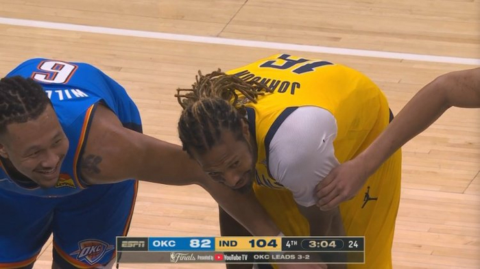 他来了!末节步行者大比分领先 还剩3分钟詹姆斯-约翰逊披挂上阵