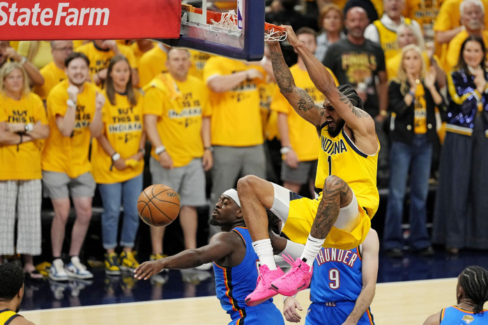 直播吧6月20日讯 步行者108-91轻取雷霆,将总决赛拖入抢7。赛后,步行者球员托平接受媒体采访。